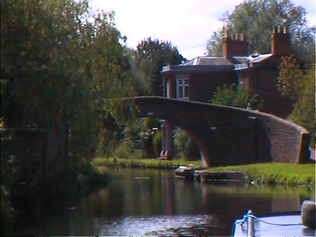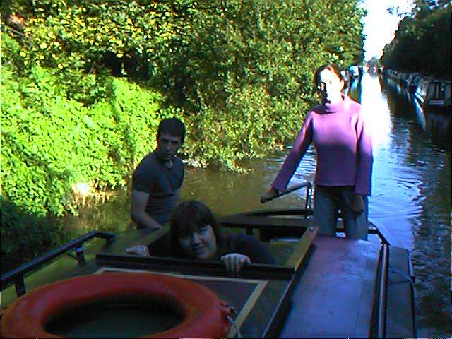 The kettle was on when John returned from his 6 mile run at 07:30. We had all (even Rob) breakfasted and set off by 09:00. The first thing that we encountered on this section of the aestetically deteriorating Stratford canal was miles and miles of that red and white plastic tape that the authorities place around hazards to stop the public hurting themselves. Unfortunately, this lot was around our prop! Application of my shiny new 'engineroom' carving knife soon sorted it out and we managed to fill a Tescos carrier bag with it. I then spent the rest of the day singing " we've got miles and miles of poly round the prop etc. etc. ..............." much to the embarrassment of the crew. The next section involved a chicane through a 3 piece suite and lots of floral tributes floating in the canal. |