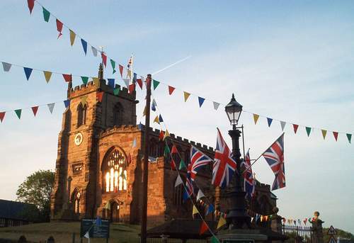 The day started with better weather than forecast and we left Audlum accompanied by the sound of church bells. Not a minute too soon as the Mill had some wonderful canal paintings for sale. Never mind 3 figures, the Crossley palette knife canvasses are so lively. Onto Nantwich and were lucky to find a convenient mooring for lunch and Simon & Graham did a car shuffle. Brenda walked into town, it was closed except for football fan packed pubs, but she got no clues as to who had won England vs. Sweden. |