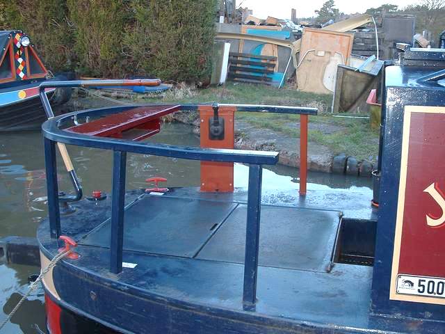 We took a 'lurker' and his 2 lovely daughters for a short trip at Alvechurch. He was wintering on a hire-boat with a view to buying a batchelor-live-aboard. He waved as we were passing and asked "are you the Jannocks that's on the web? We agreed we were but hastily denied everything else. That's 2 lurkers we've outed so far. Graham painted the new control column and did some touching up of worn bits and rust spots. having been adequately warned, and having given my assurances to the contrary, I promptly stood in wet paint and then mopped over wet paint trying to get rid of the horrible black stuff. - Sorry darling |