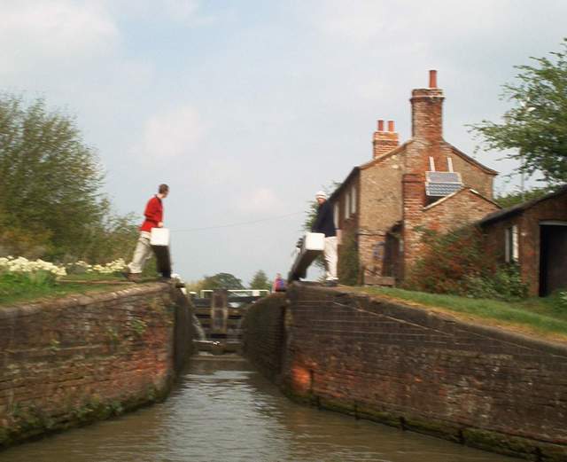 (Ken) Commenced journey from Napton and the days target was to reach Welton wharf, which we achieved. The weather was sunny and warm but late afternoon it became much cooler (something to do with 20 minutes in a tunnel?) The narrow locks that we went through were not very far apart so there was plenty of activity. After the 1st set of locks (Napton) we had a longer run until the next set were reached (Braunston) The boat traffic now was much thicker and so we had to double up both ways through the locks. |