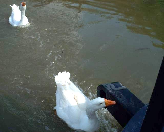 Up at 08:00 having been serenaded by nature's music of the morning ..... what a lovely day. Breakfast was taken accompanied by swans that belched and poo'd whilst we watched the moorhens beat up the ducks. Such is life. |