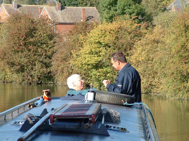 (Don) One of those sunny, but cold, autumn days. Brilliant colours from all the trees. First stab at driving, much like coxing a rowing eight, 60+ ft and a little rudder at the back - but the drive is different, no opportunity to back down on one side (whatever that means?) Cross winds came as a surprise and no wind instruments ( a la yacht) Still, eventually trusted with driving through a couple of locks, each the subject of significant recovery action! How can driving in a straight line be so difficult? Very conscious of the damage that can be done with 13 tons at 4 MPH (similar to an 8 ton yacht at 6.5 knots) but no opportunity to tack away. |