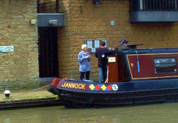 (Simon) Before Ian starts boasting in French about beer swilling abilities, SoP (Simon as he's commonly known) was up, and single handedly moving Jannock to Norton junction to turn ready for the days cruising. I met another boat trying to reverse the same journey and so we breasted up (nose to tail) and continued to the junction. Sodditeers then moaned because I turned up late to collect them from the car. Right .. over to Ian |
