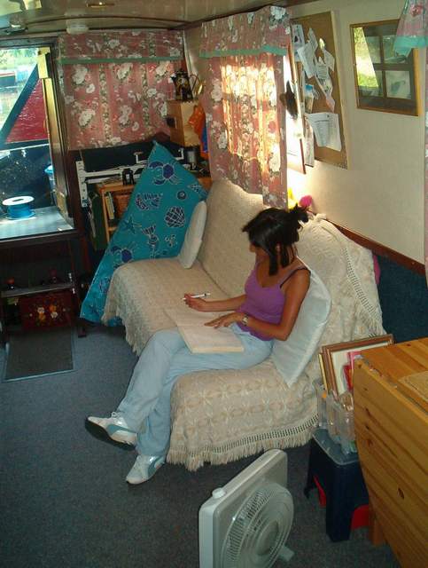 So, moored in the shade of overhanging trees, with all the curtains closed to the sun, when we opened up the cabin temperature was 34.5 degrees - phew whatb a scorcher! |