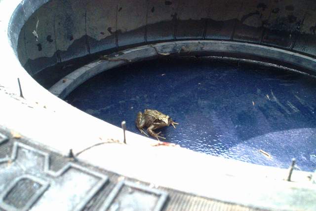 Just after setting off, a frog crawled out from within one of the mooring tyres on the roof. Matt christened it Susan while it remained on board. Passed down through last 3 locks where we waited about 1 hour for Brentford lock to be ready. Once through Brentford lock and onto the Thames we set off northbound riding the waves of the passing trip boats. Did a self pump-out at Molesley lock and then moored for the night by the park immediately before Sunbury Court Island. A cooling swim was followed by a walk up to the Flower Pot for a meal. |