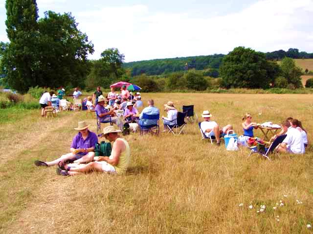 The afternoon started with a cream tea and collective gazebo erection, was followed by an evening of ad-hoc entertainment, interupted by the arrival and consumption of fish and chips and was rounded off by a magnificent fireworks display at Basildon House at 10pm. (not laid on specifically for the GiG, but close enough to be appreciated) |