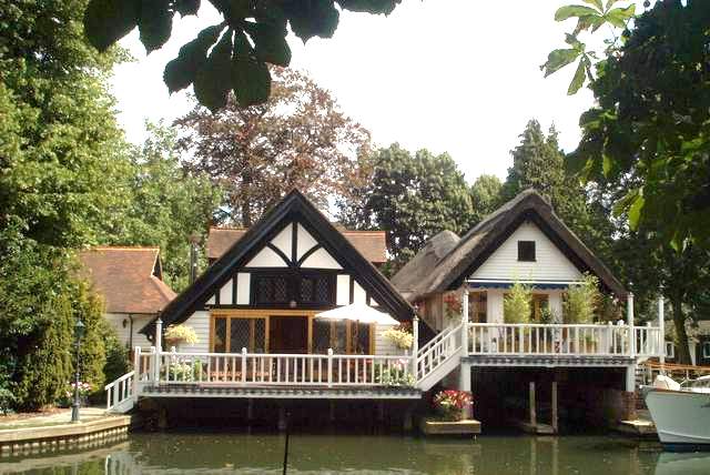 Not quite a heat and tetsie flies day today, although the European suncream lake is still diminishing fast. Brenda lost one of our solar powered lights overboard at Cookham lock by hitting it and snapping the mounting bracket. Another day spent marvelling at some of the fabulous houses lining the Thames. Almost makes one want to 'do' the lottery ..... but only almost. Luncheon was taken at the (yet another) Flowerpot, Ramenemenemenemenham (Aston). The food couldn't have been tastier if we HAD won the lottery; excellent tomato sauce and wonderful canneloni. We enjoyed the afterlunch air display , a biplane that was stunting high above us - we couldn't, however, decide whether it was a full size one or a very large model. We passed through Henley before finally making it to Sonning Bridge for the night stop. |