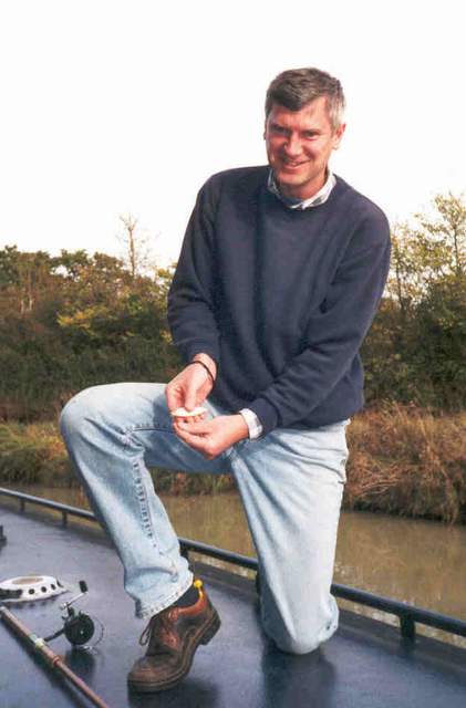 (Graham) Up at 08:00, breakfasted and en-route to Napton bottom lock at 10:00. Brian had not yet managed to have a beer when we started (he must be ill!) and so Ian retains the record. Fish 0 Fishermen 2 Brian fought bravely and landed a large (???) Roach. Ian then landed it's baby (the smallest little fishy in the world!) just as the final whistle was about to be blown!! |