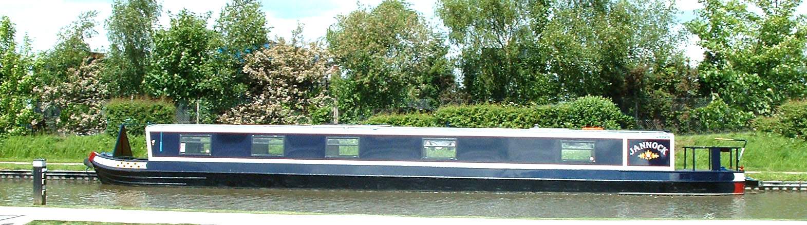 With our hearts in our mouths, we travelled to Rugby to see Jannock's new colour scheme for the first time since we left her at Willow Wren's yard on 12th April. We had designed the colourscheme on computer but were never sure what it would turn out like. Initially it was a bit of a shock but I can honestly say that we're very happy with her new sophisticated look. |