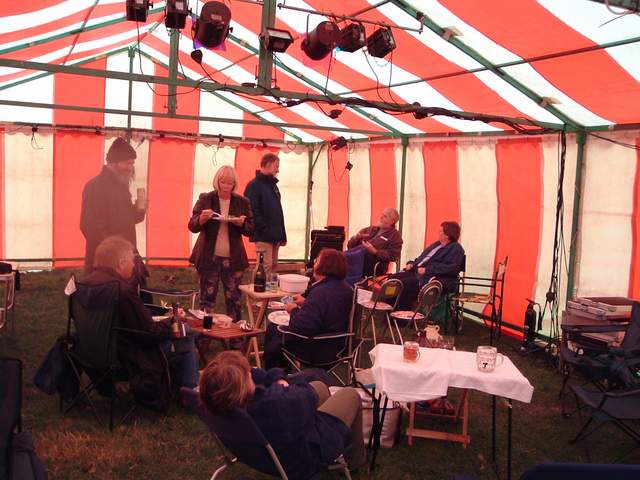 we finished up in the marquee due to rain. The band was very good, and we won T shirts and fleeces in the raffle. Hurrah. |