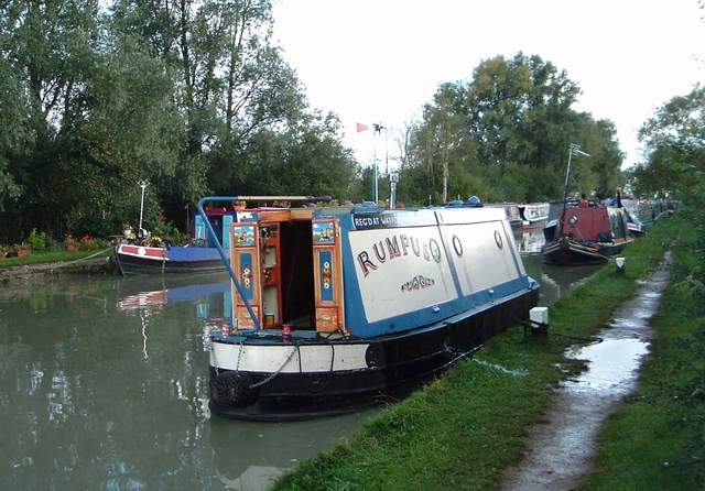 Brenda : We took a leisurely breakfast in order to fully appreciate the sunshine and birdsong; that's our excuse and we're sticking to it. The deathwish steerers were replaced by the 'let's take locks very slowly' school of boating, so progress was very slow. At Alrewas we were watched by a well to do, elderly couple. She: 'this canal seems awfully narrow and rather difficult, why don't you go to another one where it's wider for you?' He: ' you've just made all that effort to empty the lock, why on earth are you bothering to fill it up again!?' I explained that we needed it full to enter it in order that we could descend and proceed, but he just couldn't see it. Final mooring just around the corner from the Barton Turns Marina - the 2004 GiG site. |