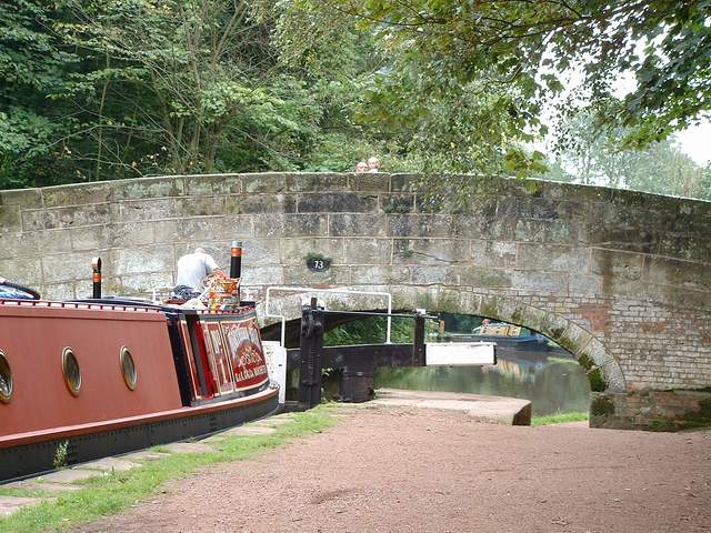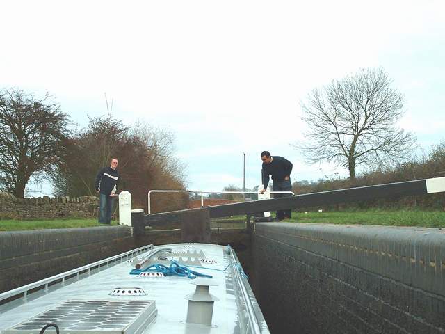 windlass. Using a poor, knotty length of rope, his hands, the lock-keeper and me on gates, he got the boat to the top. A private boater who had not consulted the lockie before entering