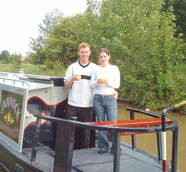 Simon: First suncream application of 2004. Working up the flight sun protection was required, but the sun disappeared within 30 mins of its application. Phaedra became star lock crew addition, and 9 hours and 16 locks got us into Rugby for a Jannock repaint. See you in your new colours soon. |