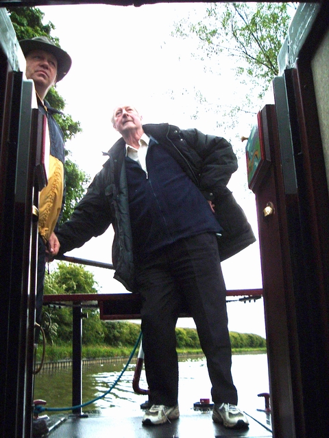 They left the gates open at the next lock. I asked, politely of course, if they'd done so for any good reason. Wife apologised and came back to close the gate, although too late as I'd done it, at which steerer and husband got the hump and simply steered off into the sunset abandoning her and the kids. Our offer of a lift was politely refusedand we next met them aground having pulled in to pick the crew up. We had to help them get off the mud. I brought the back end in to pick up Graham, praying I didn't meet the same fate and look a complete twonk. We forgave the weather gods for a poor day as the perfect manoevre was performed with the help of the wind - and that meant we got to overtake them. |
