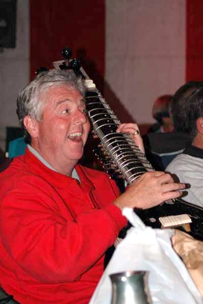 Graham's report : Cutweb gathering 2005. Friday was build-up day and I assisted Guy with setting up the lights etc. Brenda went to Prairie Crocus for stuffed cabbage leaves. The traditional Friday evening take away was accompanied by Nash who brought along lots of musical instruments for us to play with whilst he entertained us with his brilliant sitar playing. Saturday started with brighter weather and a trip to the vets for a poorly pooch. The Saturday evening entertainment was provided by an excellent 3 piece band called Isambarde who admitted it was the wierdest gig they had done and asked to come back next year. (we hadn't the heart to tell the lead singer that she had been stood in a cowpat all evening). The Sunday evening quiz was our task (we won last years ;^) and we managed to keep everone quiet for a couple of hours. The whole event was a great success thanks to properly working marquee heating and provision of a portaloo on site. Our thanks go the the event organisers for a terrific weekend. |