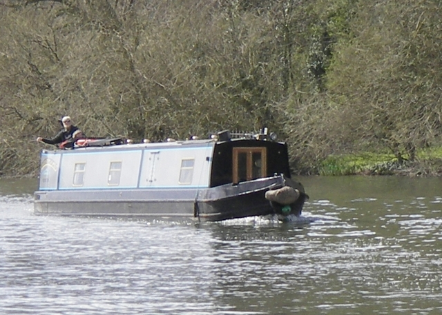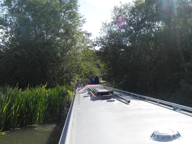 We left our Cropredy mooring under an overcast sky and made our way down to Banbury. We are off for the summer now and will not be back until September at the earliest! There were a few minor 'incidents' as we slowed to pass moored boats, due to the strong crosswinds. Jannock will behave quite well in a wind as long as forward motion is maintained. When you take off power she'll drift sideways in anything more than a normal windspeed. |