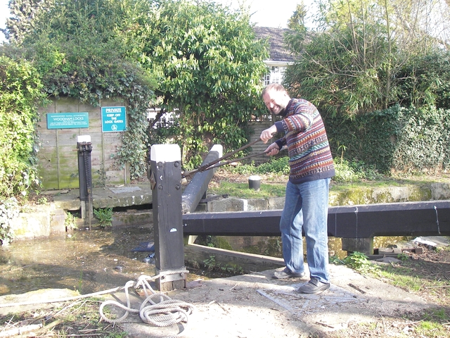 We all started bright and early for the hour cruise to Woodham Top Lock. After about 20 minutes waiting, Jonathon the ranger appeared and Earnest and Prairie Crocus set off with Jannock in warm pursuit. The ranger followed us down, sealing the top gates of each lock with silt scraped from the bottom of the cut. |