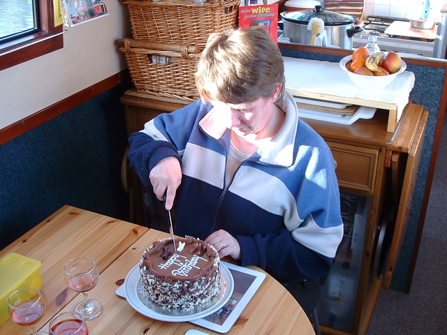 We downed bacon and eggs before moving off - well it is my birthday. Pressies and cake were on the breakfast menu too.