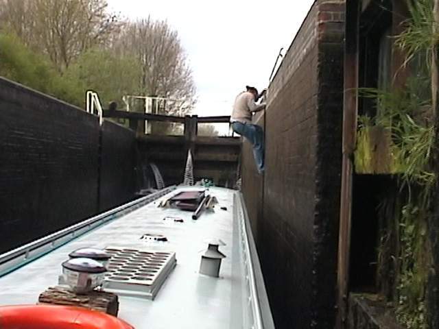 through the lock as it's so awkward, much easier with two people landside because the top gates keep swinging open, and then I got a ride up to join Jannock. |