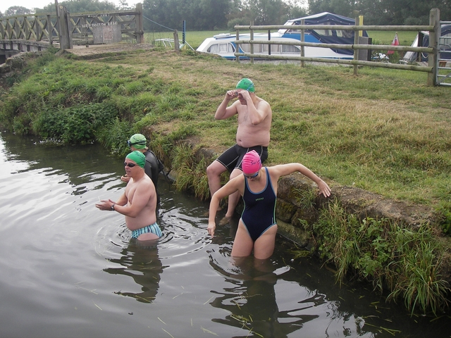 A getting-things-ready sort of day. It started with us watching 10 brave souls getting their kit off on the towpath. Some donned wetsuits, all wore tres' 50s swim hats in unsuitable colours, and inch by inch they lowered themselves into the Thames for a day's swim. They even paid good cash money for the experience - fools. |