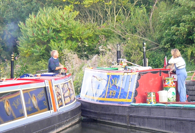 We were moored up with, amongst others, John and Phil Saxon on nb Lion. John and Phil were both born 'on the boats'. Phil left when she was about 15, John stayed longer working his mother's boat I understand. They are holidaying and borrowed our internet connection to shop for flights for their November cruise in France with their chums on nb Waterlily, a cut-n-shut boat which used to be Ostrich or Kestrel whilst in service with Fellows, Morton and Clayton. Ostrich and Kestrel were a working pair which were sold together and broken up in both senses of the word. They were also mixed up, and only just being sorted out as to which is which now. An interesting evening with lovely people. |