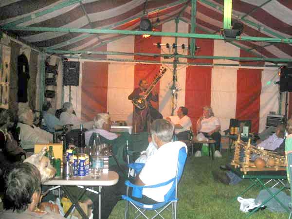 We arrived by car on Friday morning to find the marquee already erected. I hastily erected the stage kit I had brought with me and then the technical team could get the sound and lights sorted. Friday evening started with a takeout meal followed by another enjoyable evening of entertainment supplied by Nash. This included lots of audience participation as he is used to dealing with people with learning difficulties :^) |