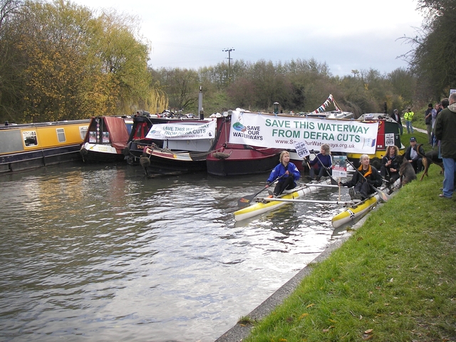 Brenda :- We had a successful blockade of the Grand Union in the morning. It was just one of the many all over the system, and part of the Save Our Waterways campaign. Well done Simon and Deb, your organisation did us proud, your fry-up set us up for the day. The press were there, an MP, many organisations were represented and there was even retired highups with their boat and a retired lockeeper from BW alongside incognito current emloyees. |