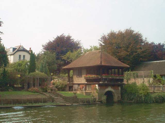 Not quite a heat and tetsie flies day today, although the European suncream lake is still diminishing fast. Brenda lost one of our solar powered lights overboard at Cookham lock by hitting it and snapping the mounting bracket. Another day spent marvelling at some of the fabulous houses lining the Thames. Almost makes one want to 'do' the lottery ..... but only almost. Luncheon was taken at the (yet another) Flowerpot, Ramenemenemenemenham (Aston). The food couldn't have been tastier if we HAD won the lottery; excellent tomato sauce and wonderful canneloni. We enjoyed the afterlunch air display , a biplane that was stunting high above us - we couldn't, however, decide whether it was a full size one or a very large model. We passed through Henley before finally making it to Sonning Bridge for the night stop. |