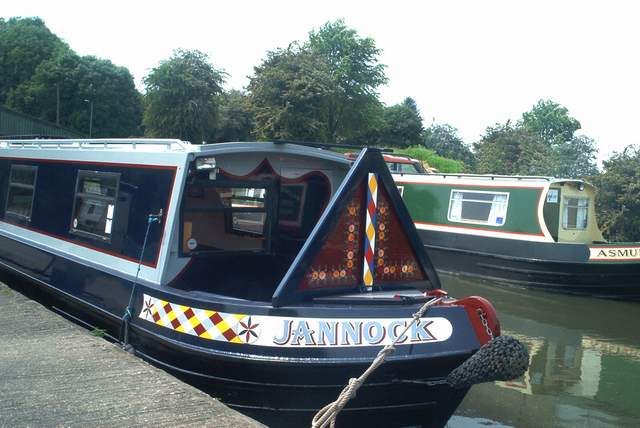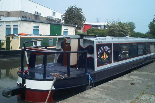 With our hearts in our mouths, we travelled to Rugby to see Jannock's new colour scheme for the first time since we left her at Willow Wren's yard on 12th April. We had designed the colourscheme on computer but were never sure what it would turn out like. Initially it was a bit of a shock but I can honestly say that we're very happy with her new sophisticated look. |